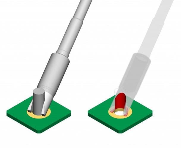 Ein weiterer Faktor zur Auswahl stellt die Form der Lötspitze dar: Meißel, konisch, gebogen, gerade, mit Lötdepot – und viele mehr. Verlöten Sie Kabel oder Steckverbindungen, eignen sich in der Regel Meißel förmige Lötspitzen besonders. Für schwer erreichbare Stellen wählen Sie gebogene Lötspitzenformen. Möchten Sie große Masseflächen entlöten, eignen sich klingenförmige Lötspitzen besonders gut – diese sind meistens sehr breit und dick. Häufig haben viele Hersteller auch „High-Thermal“ Varianten im Sortiment. Diese sind etwas dicker und können mehr Wärme als herkömmliche Lötspitzen übertragen. Durch die erhöhte Wärmeübertragung können Sie Ihren Lötprozess um bis zu 40% beschleunigen, aber Achtung: zu viel Wärme kann Schäden an der Leiterplatte und/oder an den Komponenten hervorrufen.